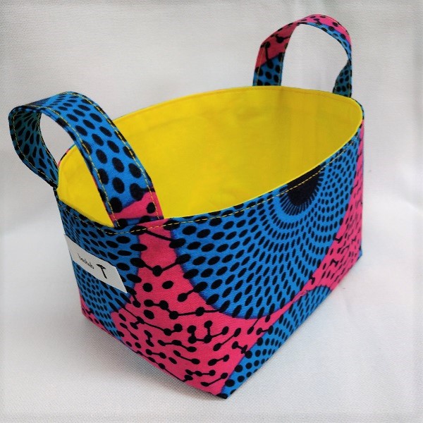 個性的なアフリカ布でつくった小物入れ。