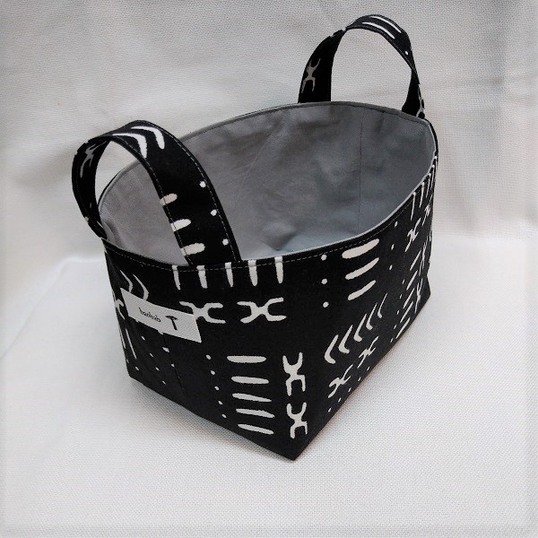 個性的なアフリカ布でつくった小物入れ。