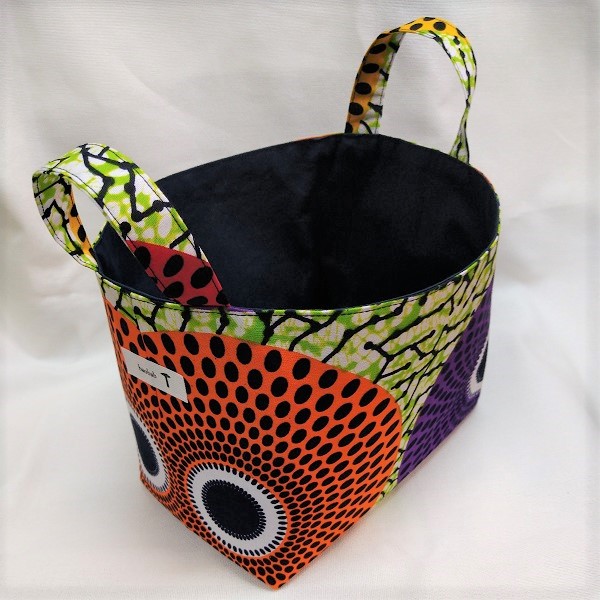 個性的なアフリカ布でつくった小物入れ。