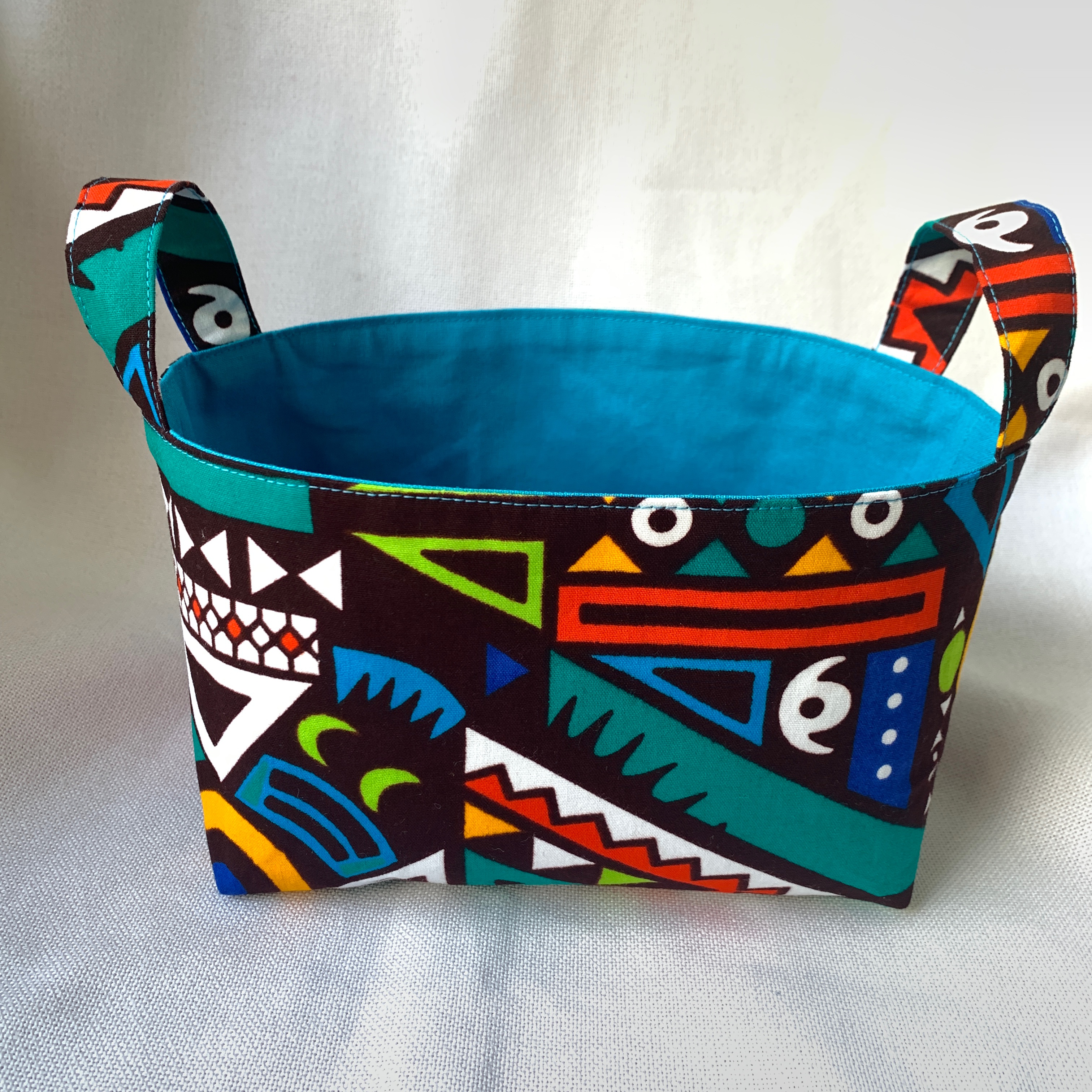 個性的なアフリカ布でつくった小物入れ。