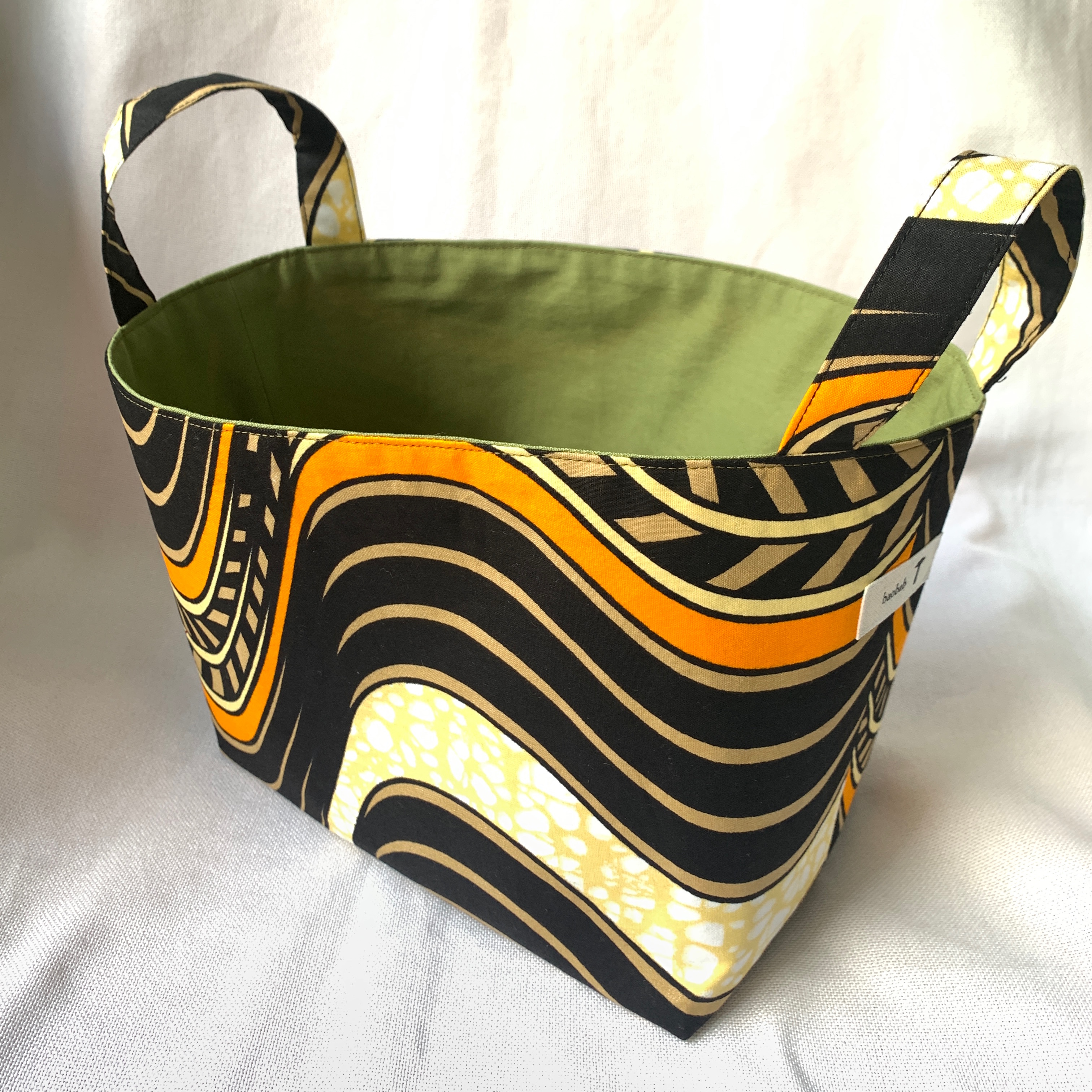 個性的なアフリカ布でつくった小物入れ。 裏地はモノトーンでシンプルです。
