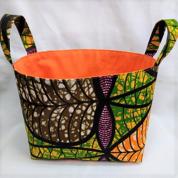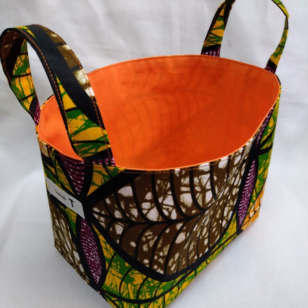 個性的なアフリカ布でつくった小物入れ。