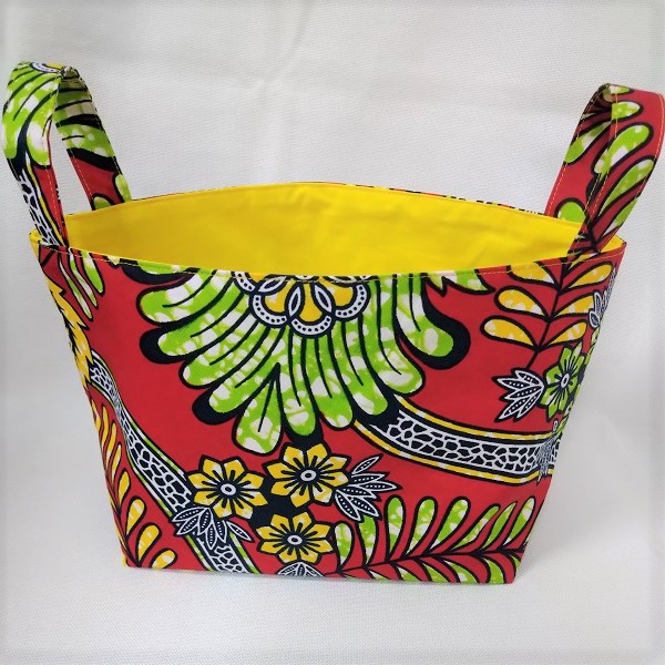 個性的なアフリカ布でつくった小物入れ。