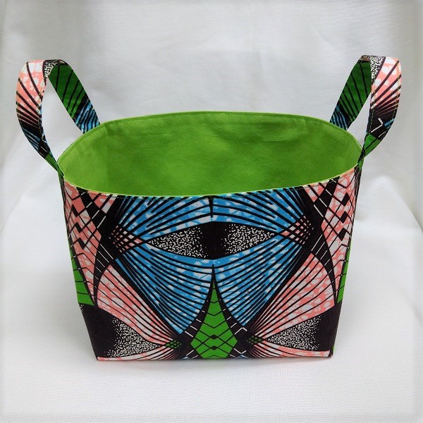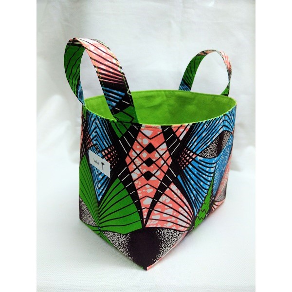 個性的なアフリカ布でつくった小物入れ。