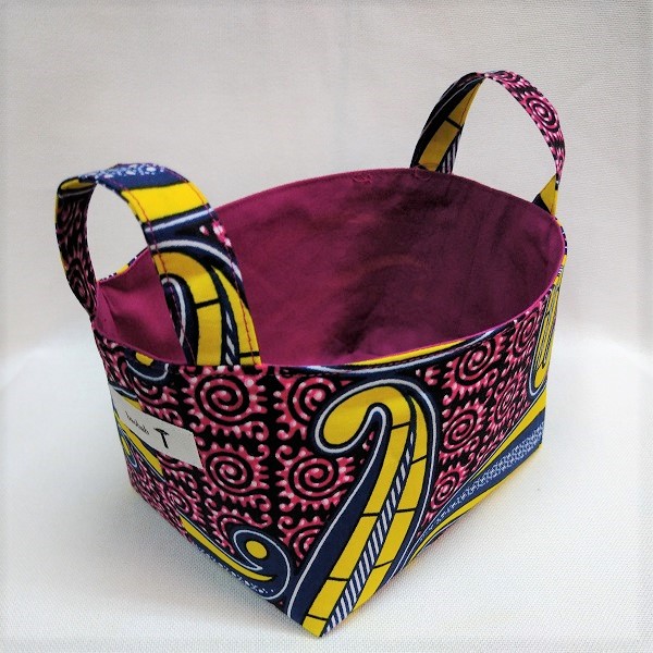 個性的なアフリカ布でつくった小物入れ。