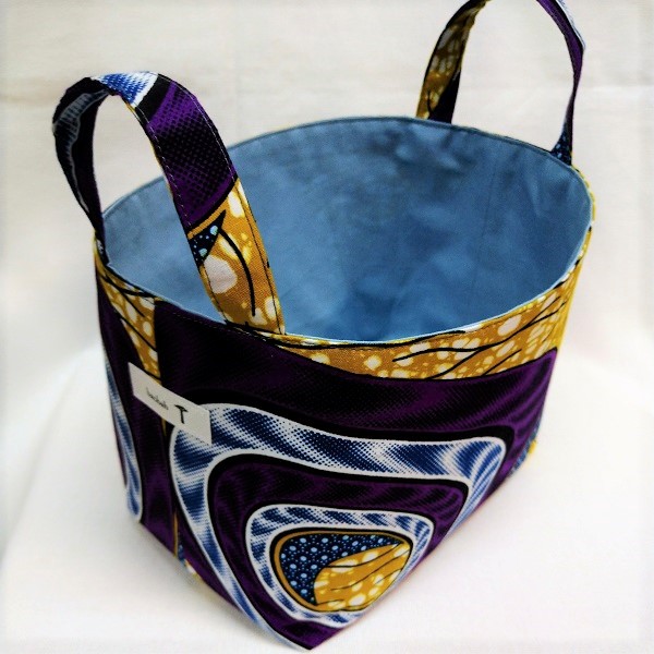 個性的なアフリカ布でつくった小物入れ。