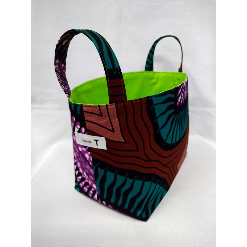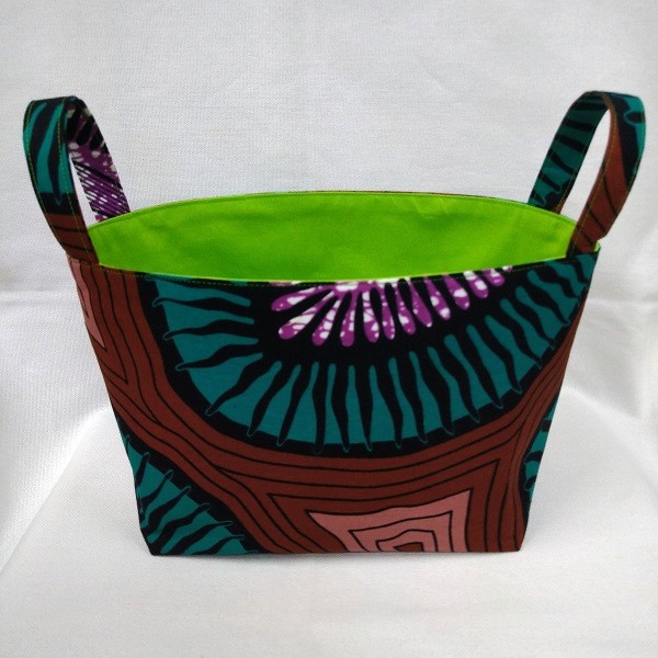個性的なアフリカ布でつくった小物入れ。