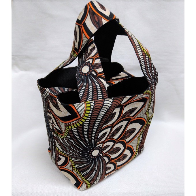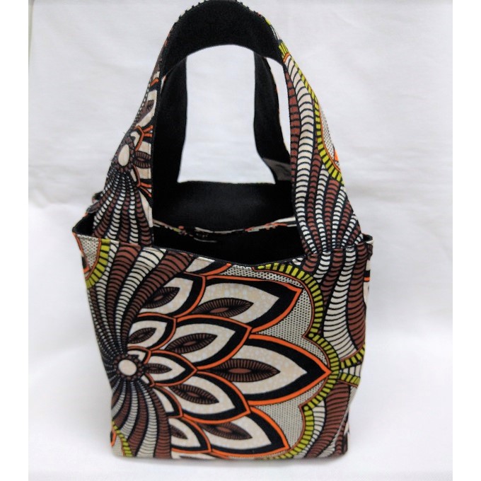 アフリカ布と帆布のリバーシブルになっています。 マグネットホックがついています。