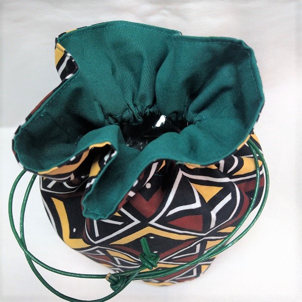 個性的なアフリカ布で巾着を作りました。