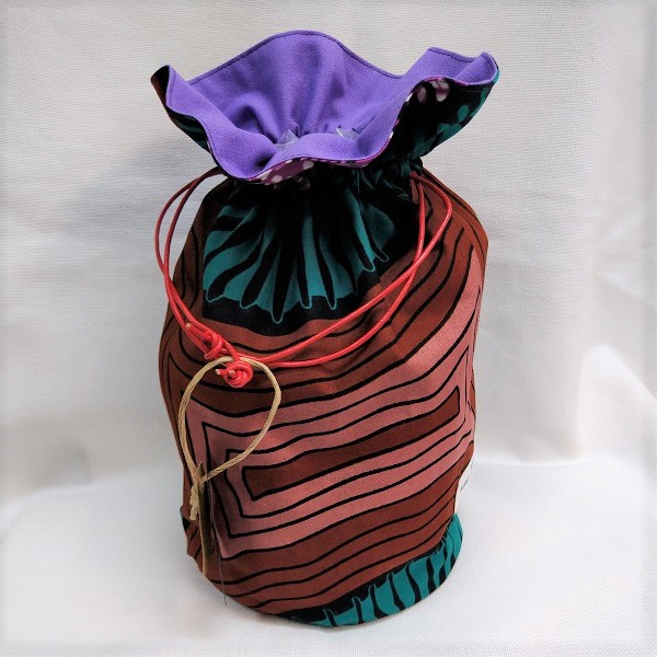 個性的なアフリカ布で巾着を作りました。