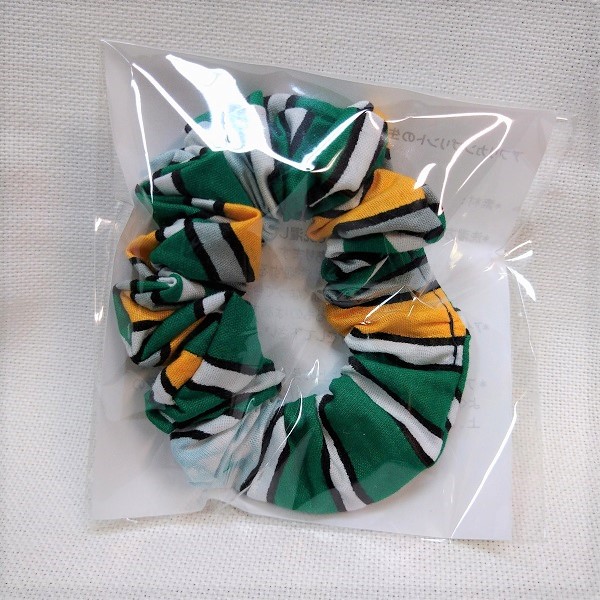 アフリカ布を使った色鮮やかなシュシュです。